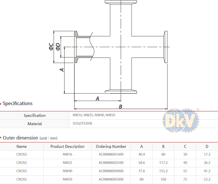 - Cút chân không chữ thập NW40, Vacuum flange cross NW40: chuyên dùng đấu nối mặt bích cho đường nạp/xả của bơm chân không theo tiêu chuẩn đấu nối NW40.