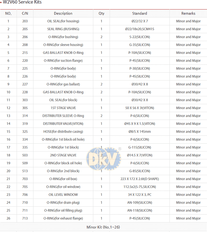 BỘ PHỤ KIỆN CHÂN KHÔNG W2V60 | WSA MINOR REPAIR KIT W2V60
