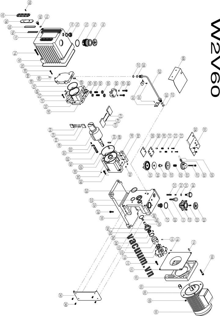 - Bộ phụ kiện bơm chân không WSA W2V60 gồm vòng đệm, valve, seal...