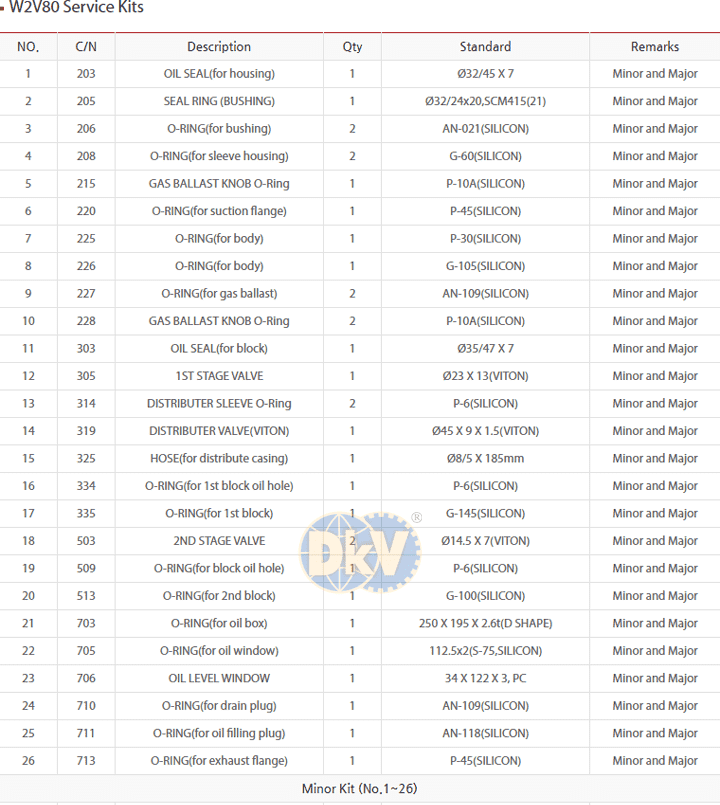 BỘ PHỤ KIỆN CHÂN KHÔNG W2V80 | WSA MINOR REPAIR KIT W2V80