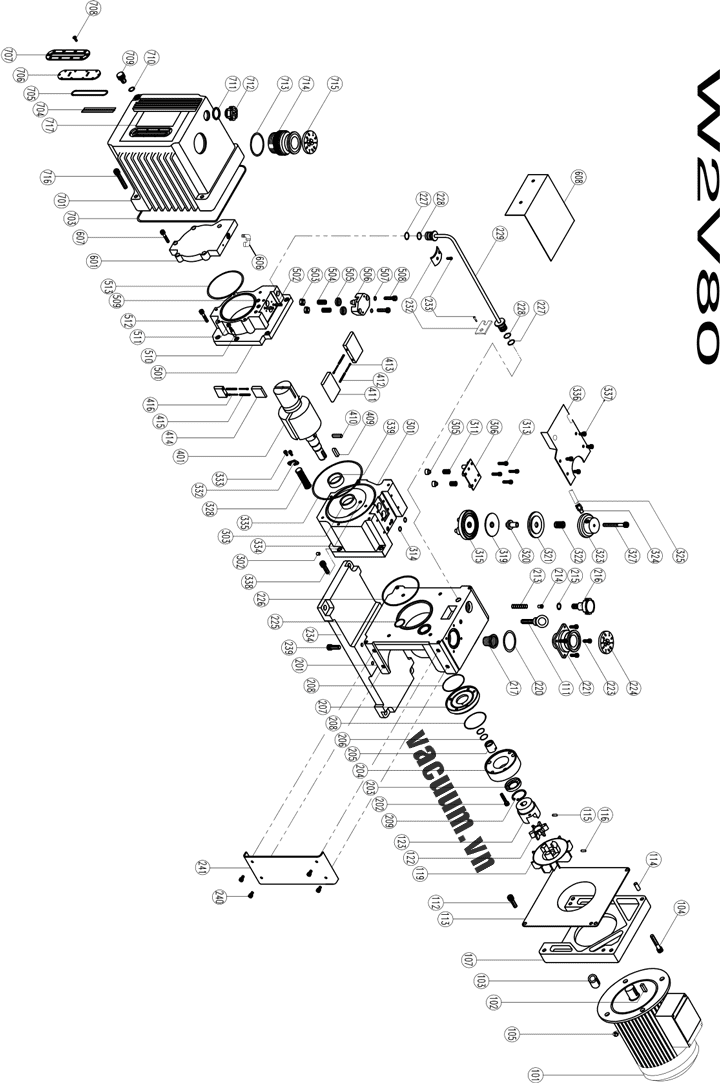 - Bộ phụ kiện bơm chân không WSA W2V80 gồm vòng đệm, valve, seal...