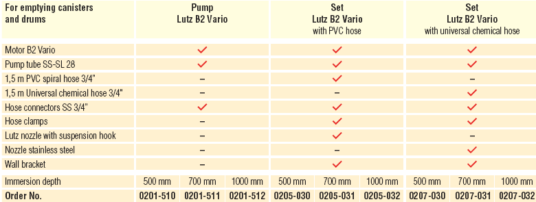 - Bơm thùng phuy Lutz B2 Vario SS, Lutz drum pump B2 Vario SS (Mã đặt hàng: 0205-032) là loại bơm thùng phuy cỡ nhỏ có lưu lượng max: 68 lít/phút, sử dụng để bơm các loại hóa chất, phụ gia, dầu nhờn nồng độ nhẹ trong công nghiệp.