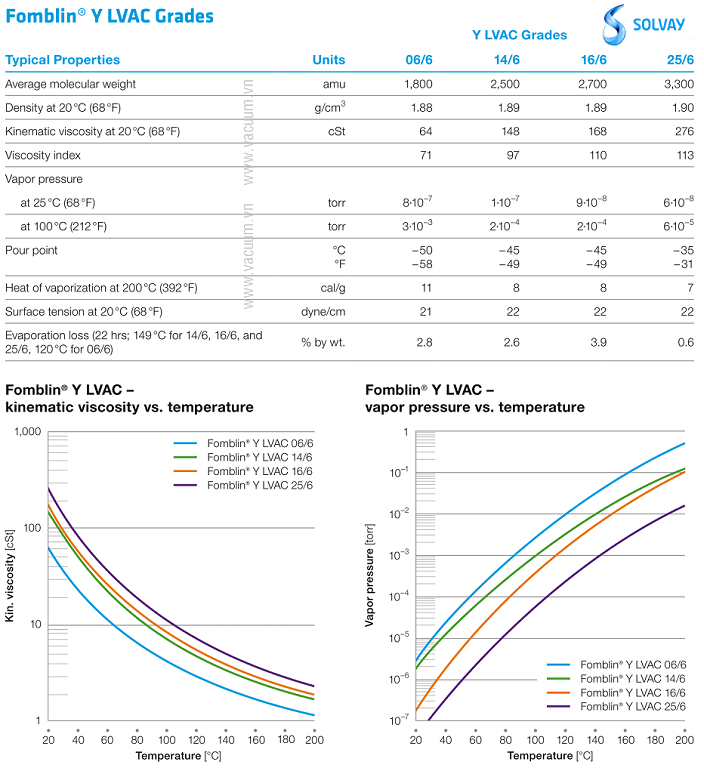 - Dầu chân không Solvay FOMBLIN® Y VAC 06/6, dầu bơm chân không Solvay FOMBLIN® Y VAC 06/6, dầu bơm hút chân không Solvay FOMBLIN® Y VAC 06/6, đóng hộp 8 kg, là loại dầu chân không đặc chủng chuyên dùng cho các loại bơm chân không của Edwards và các hãng khác.