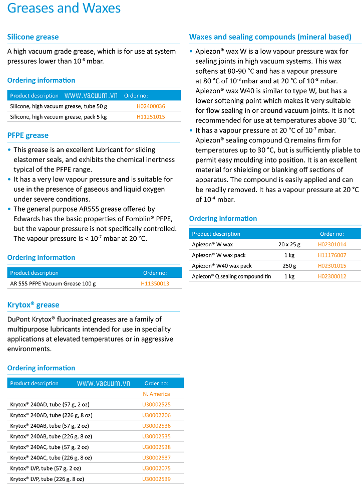 - Mỡ chân không Krytox 240AC, mỡ bơm chân không Krytox 240AC, mỡ bơm hút chân không Krytox 240AC đóng tuýp 226 gram, là loại mỡ cùng để bôi trơn cho các loại bơm chân không của Edwards và các hãng khác.