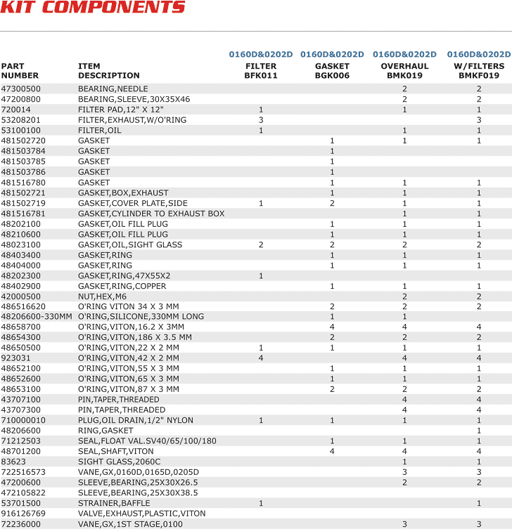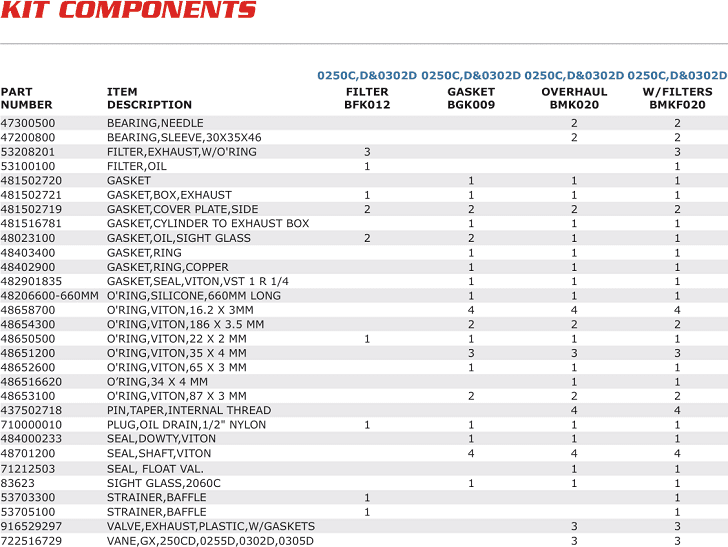PHỤ TÙNG BƠM CHÂN KHÔNG BUSCH 0302 D | BUSCH KITS AND SPARES 0302 D