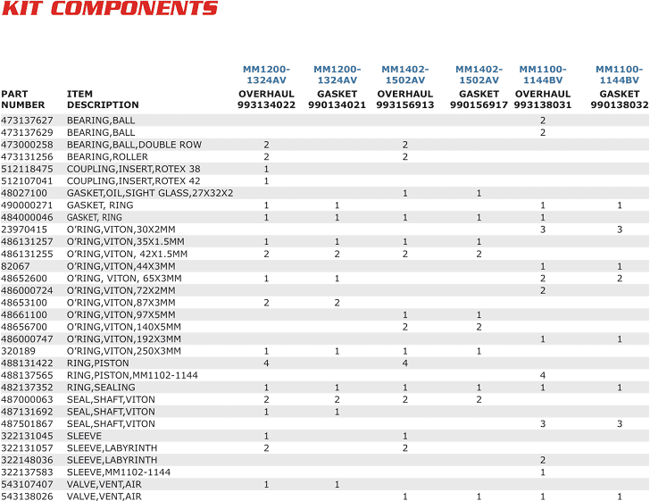 PHỤ TÙNG BƠM CHÂN KHÔNG BUSCH MM1200-1324AV | BUSCH KITS AND SPARES MM1200-1324AV