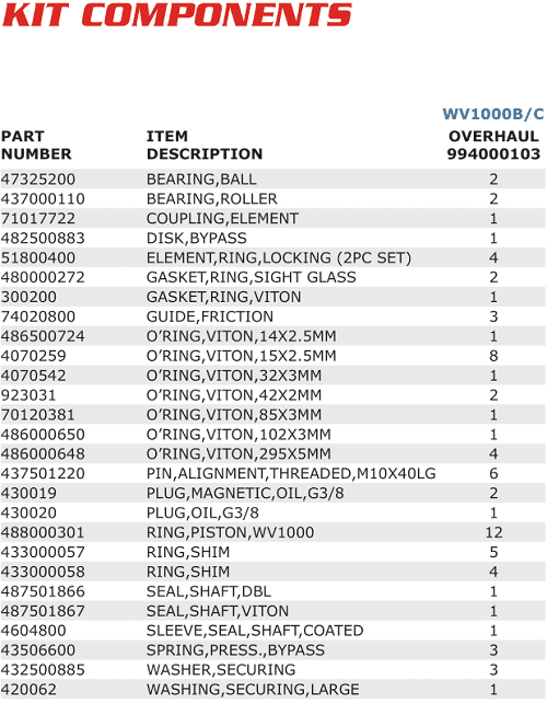 PHỤ TÙNG BƠM CHÂN KHÔNG BUSCH WV1000B | BUSCH KITS AND SPARES WV1000B
